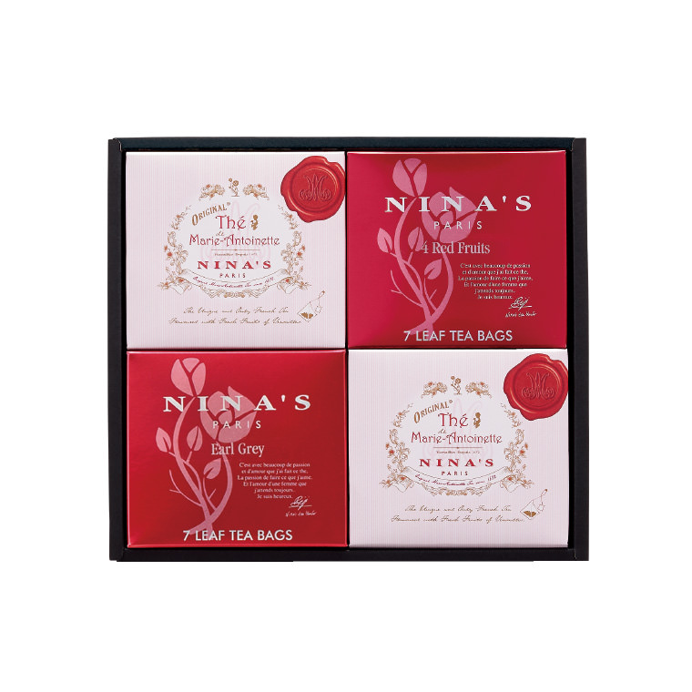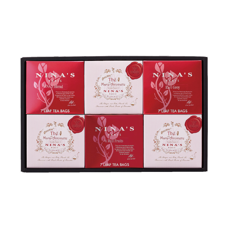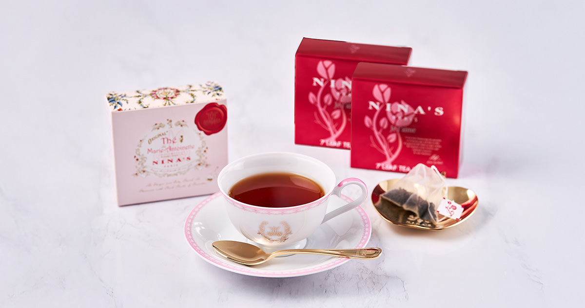 ニナスは、パリの中心地であるヴァンドーム広場のすぐ隣に本店を構える、1672年創業の老舗フランス紅茶ブランドです。王妃マリー・アントワネットも愛したヴェルサイユに現存するロイヤルシークレット ガーデンのりんごとバラで香り付けた世界唯一のフレーバーティー「ニナス オリジナル マリー・アントワネット ティー」をはじめ、熟練のブレンダーが天然のアロマや花びら、フルーツピースなどを丹念に香りづけした茶葉は豊かで深みがあり、フランスの高級レストランや一流ホテルのラウンジなどでも愛用されています。