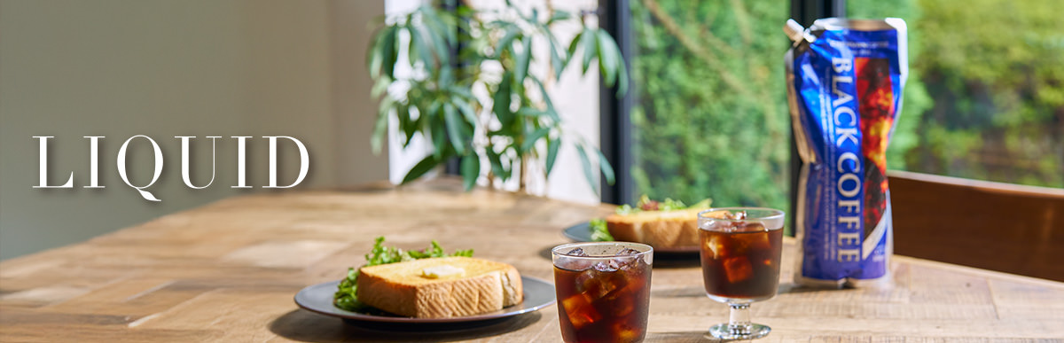 ブラックコーヒーはアラビカ種100%のコーヒー豆を南アルプスの伏流水を使い、ネルドリップ方式で抽出しています。